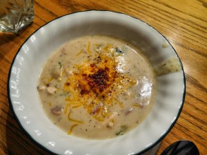 For a yummy "potato" ham chowder, use 3 cups of water and 1 cup of strong ham broth in place of the water and chicken bouillon (or chicken broth) called for in the recipe. Instead of the chicken and turkey bacon, use 4-6 cups of chopped cooked ham. Omit the butter.